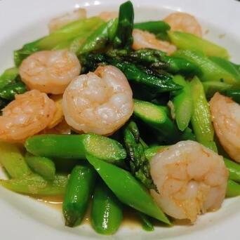 春季芦笋正鲜,跟虾仁放在一起炒,炒出来的芦笋虾仁不仅色彩鲜艳,口感清爽,而且对骨骼健康好处多多。